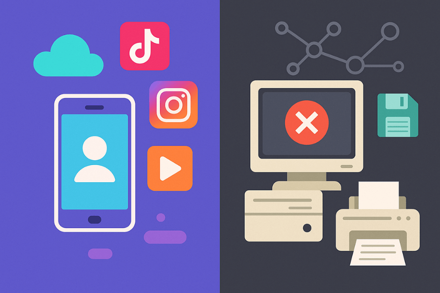 De repente, é preciso lidar com impressoras multifuncionais, sistemas legados, pastas em rede, VPN, e-mails corporativos, antivírus, fluxos de aprovação e softwares que não foram pensados para serem intuitivos. É aí que aparece a “kriptonita” dessa geração: a tecnologia corporativa considerada “obsoleta”, mas que continua sendo o coração operacional de muitas empresas.